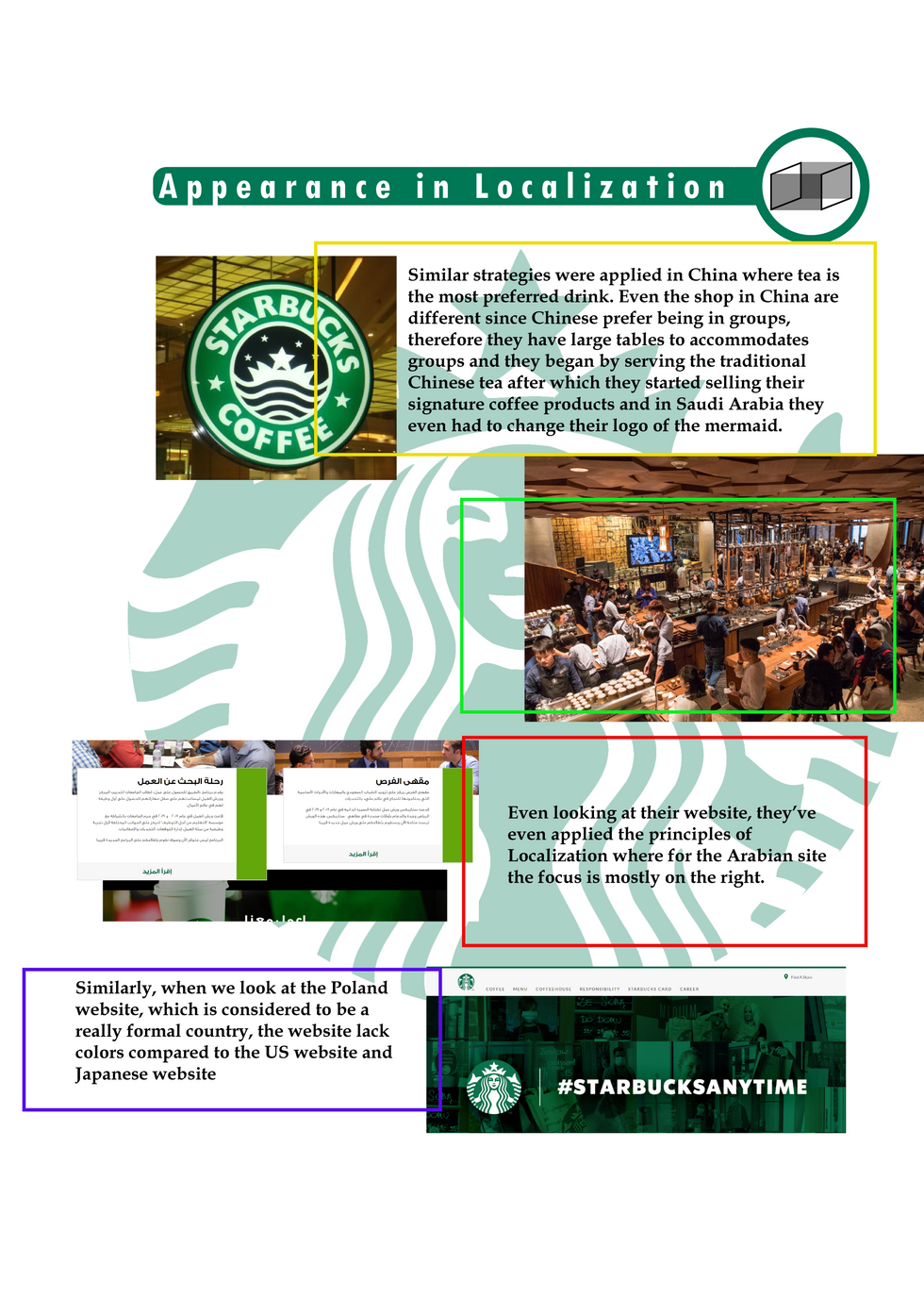 The red box explain how Starbucks had to adapt their Arabian website to fit the fact that in Arabic we start writing from the right to the left.