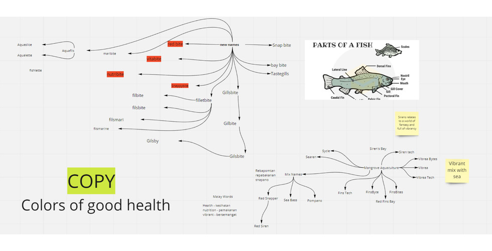 I started exploring more possible names, thinking of fish body parts and so on and I came up with a few interesting names such as: