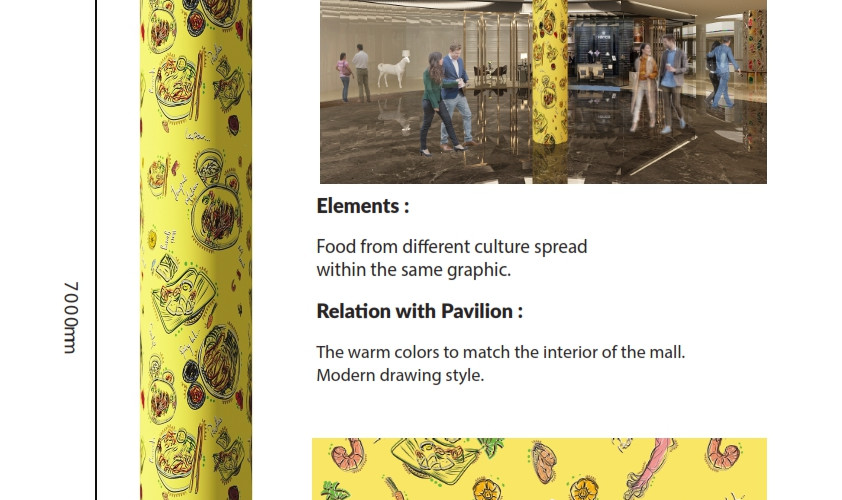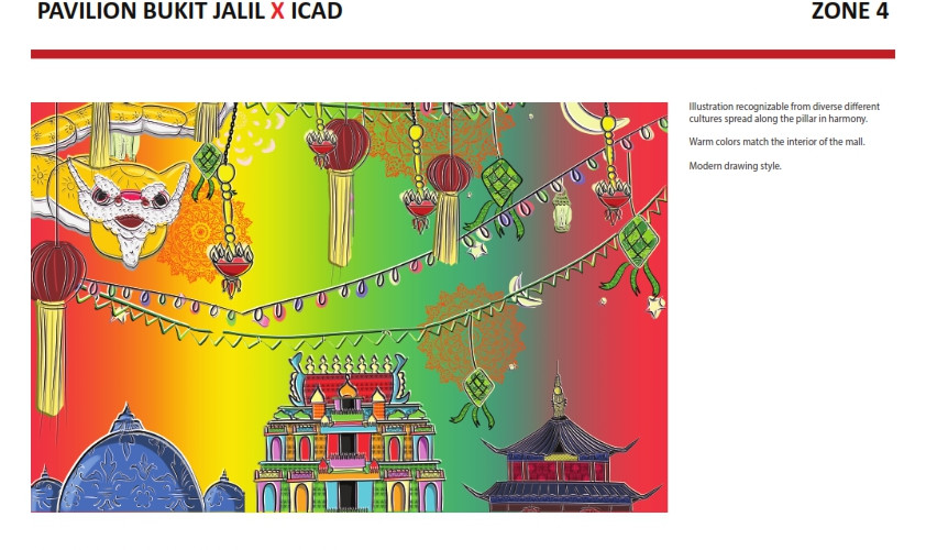 We didn't the concept yet however, I came up with the idea that Malaysia is welcoming towards all culture, thus connecting all the different together. Since the food zone had food from various Malaysian ethnics, the connectivity zone along with the Malaysian zone also has elements of the various ethnics present in Malaysia.
