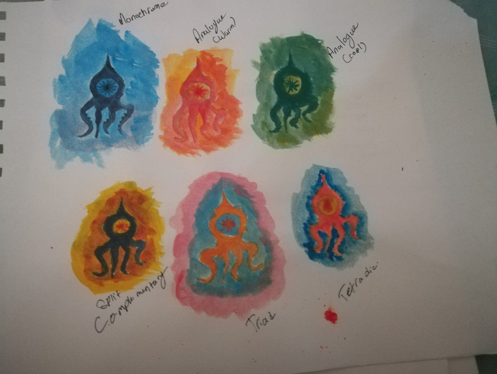 My color wheel turned a bit messy, I didn't take the spaces into consideration, instead I was focus on saving space on the page.
